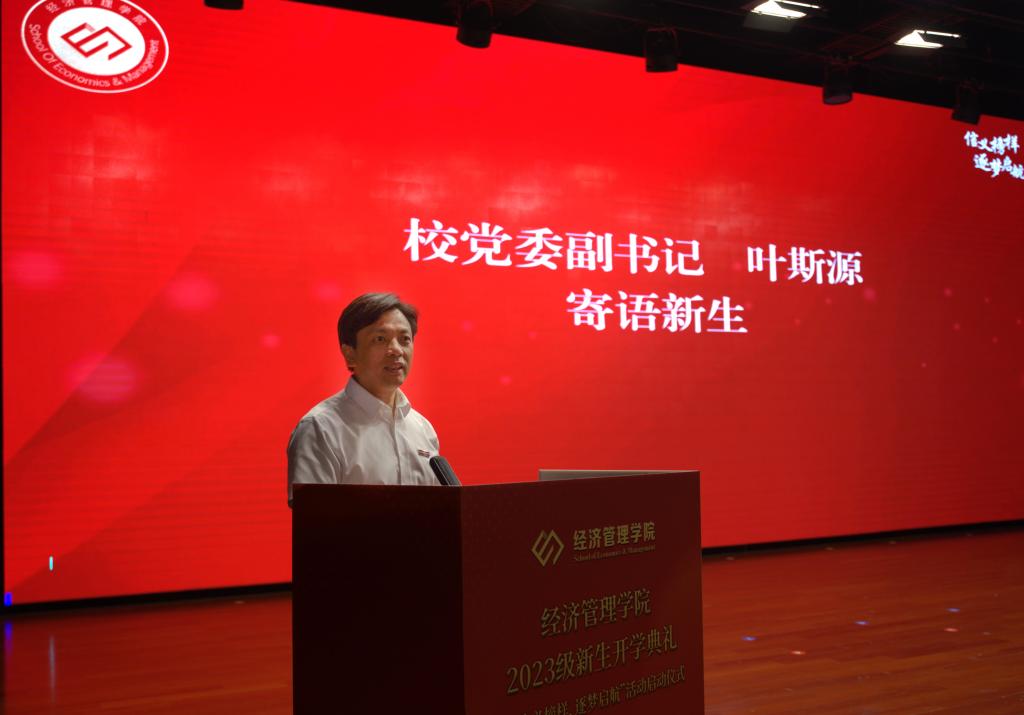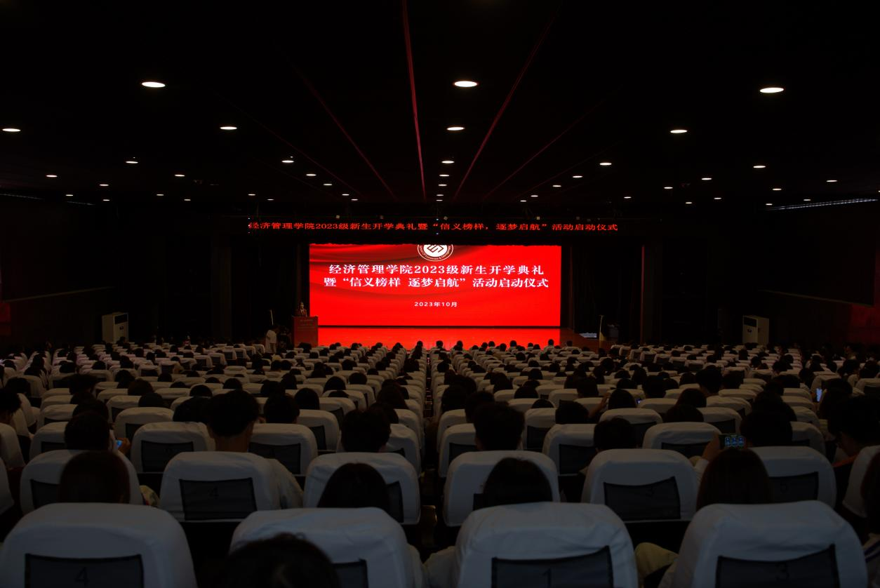 10月16日下午,beat365亚洲版官网2023级新生开学典礼暨“信义榜样、逐梦启航”启动仪式在丹溪文化厅举行。校党委副书记叶斯源、中国建设银行义乌分行副行长徐杨义、学院领导班子成员、专业负责人、新生班主任、教师代表以及学院2023级全体新生参加。
