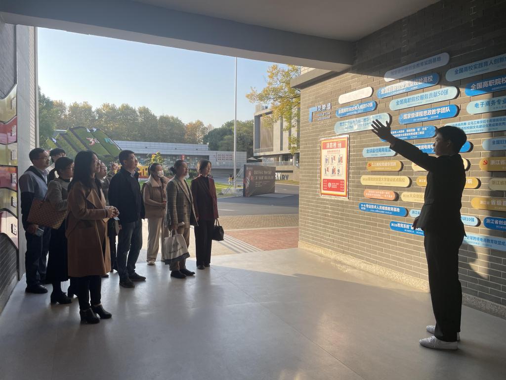会后,浙江师范大学行知学院商学院院长麻勇爱一行在beat365亚洲版官网负责人的陪同下参观考察了数字贸易实训基地、创意园等地。