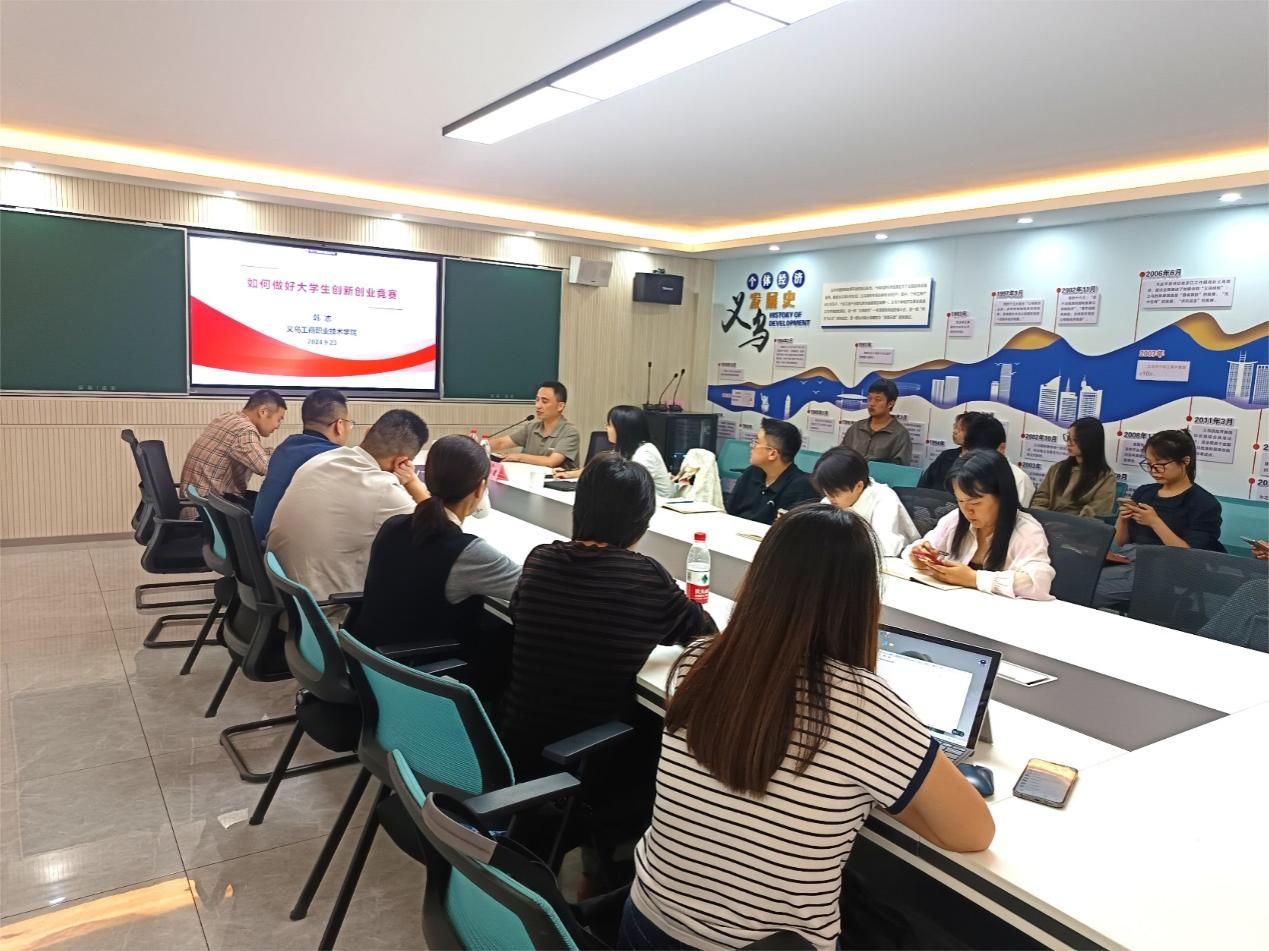 为提前谋划好2025年创新创业竞赛工作,提升参赛项目竞争力,beat365亚洲版官网于9月23日上午邀请“挑战杯”竞赛全国优秀指导教师、江苏大学韩志教授作专题辅导。