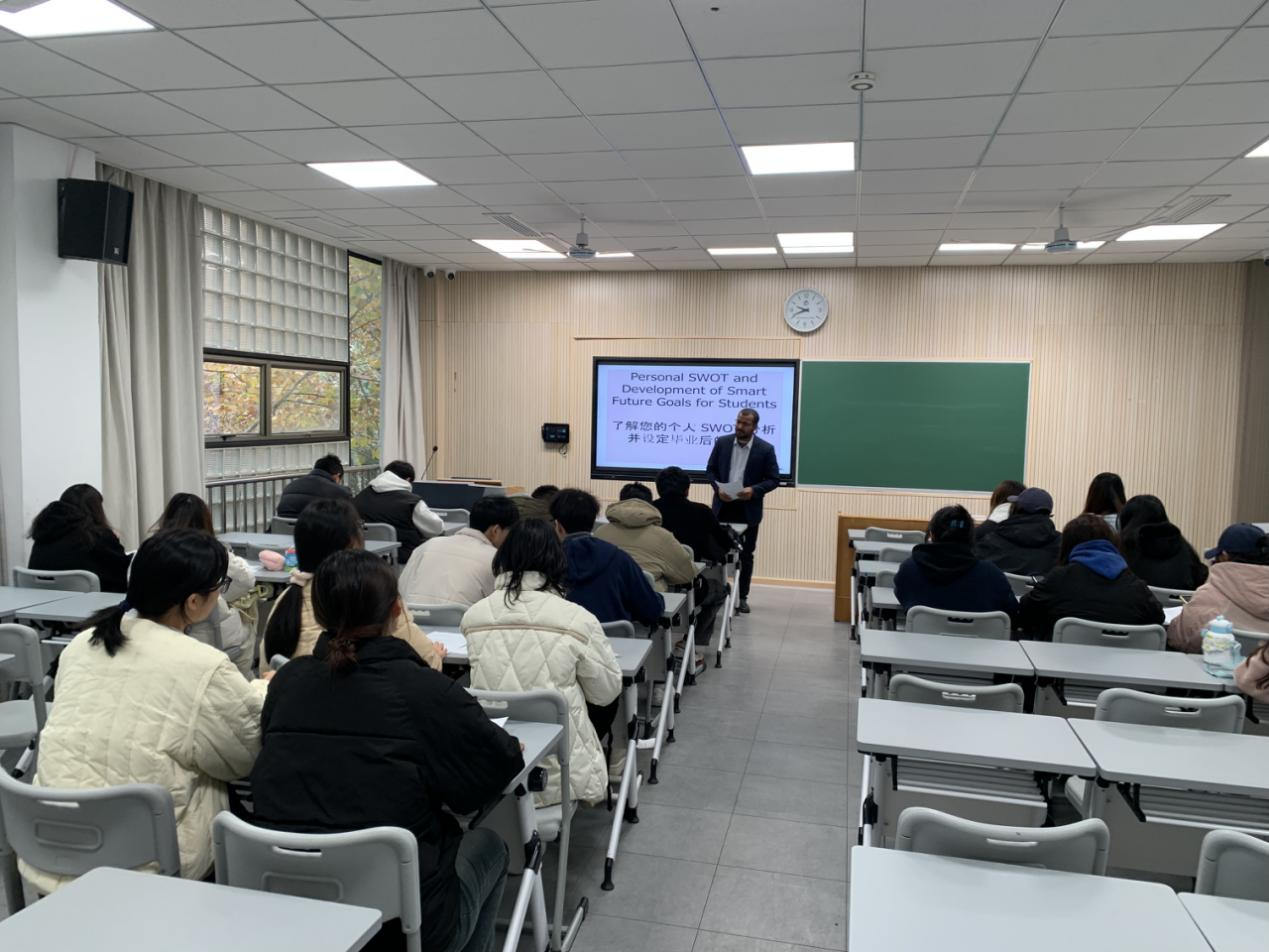 12月13日上午,beat365亚洲版官网邀请外教Hazem Ahmed Ragab Ali博士在春晗楼302为在校师生开展了一场题为“学生个人分析与职业规划”的英文主题讲座。