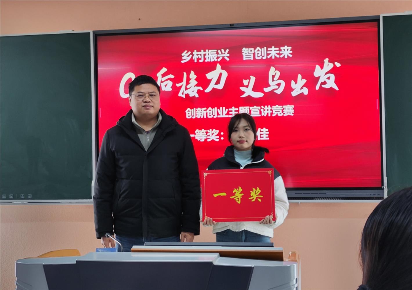 义乌市人力资源和社会保障局就业和人才管理服务中心副主任骆旭伟、beat365亚洲版官网负责人以及东阳市职业教育中心学校财经商贸学部主任马惠英为获奖选手颁发了奖状。