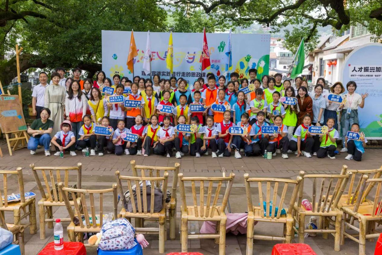 启动仪式在塘李小学大樟树下拉开帷幕。在宣讲环节,学校辅导员陈翔老师通过《义乌换“衣”记》展现城市变迁;大数据与会计专业学生施成杨以《开在“花园”里的共富之花》讲述花园村发展故事;塘李小学方之烨同学用童声表达《我的梦想和祖国紧紧相连》。随后,学校相关部门负责人为全国人大代表方豪龙等6位校外思政导师颁发聘书。6位思政导师为6支队伍授旗,象征“大手拉小手”的思政实践正式启程。