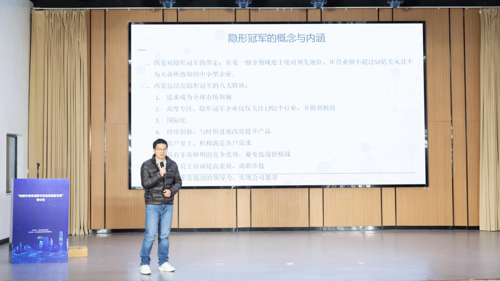 来自浙江师范大学经济与管理学院的副教授、浙江省知联会理事应洪斌带来了题为“Cultivation Strategies and Growth Mechanism of Hidden Champion(隐形冠军企业的成长机制与培育策略)”的主旨演讲。应洪斌表示,隐形冠军群体的发展壮大是我国新发展格局构建的重要支撑,隐形冠军企业培育路径要在深化理解概念的基础上分梯度进行培育,并提供创新支持。