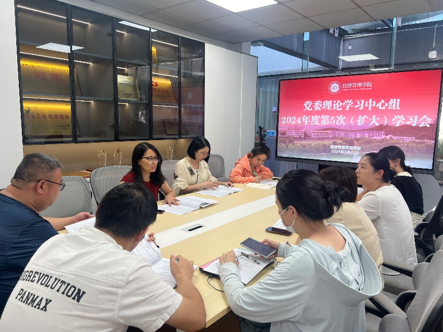 7月22日下午,学院党委理论学习中心组召开2024年度第5次(扩大)学习会,认真学习领会党的二十届三中全会精神特别是习近平总书记在全会上所作的工作报告和重要讲话精神,学习贯彻省委常委会(扩大)会议、市委常委会(扩大)会议精神。学院党委负责人主持会议,学院党委委员、各支部书记、科室负责人参加会议并交流发言。