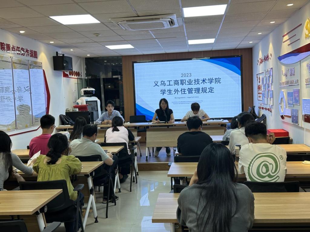 会上,负责公寓的管理辅导员详细介绍了学校学生外住管理规定,并就外住期间的注意事项进行了强调。