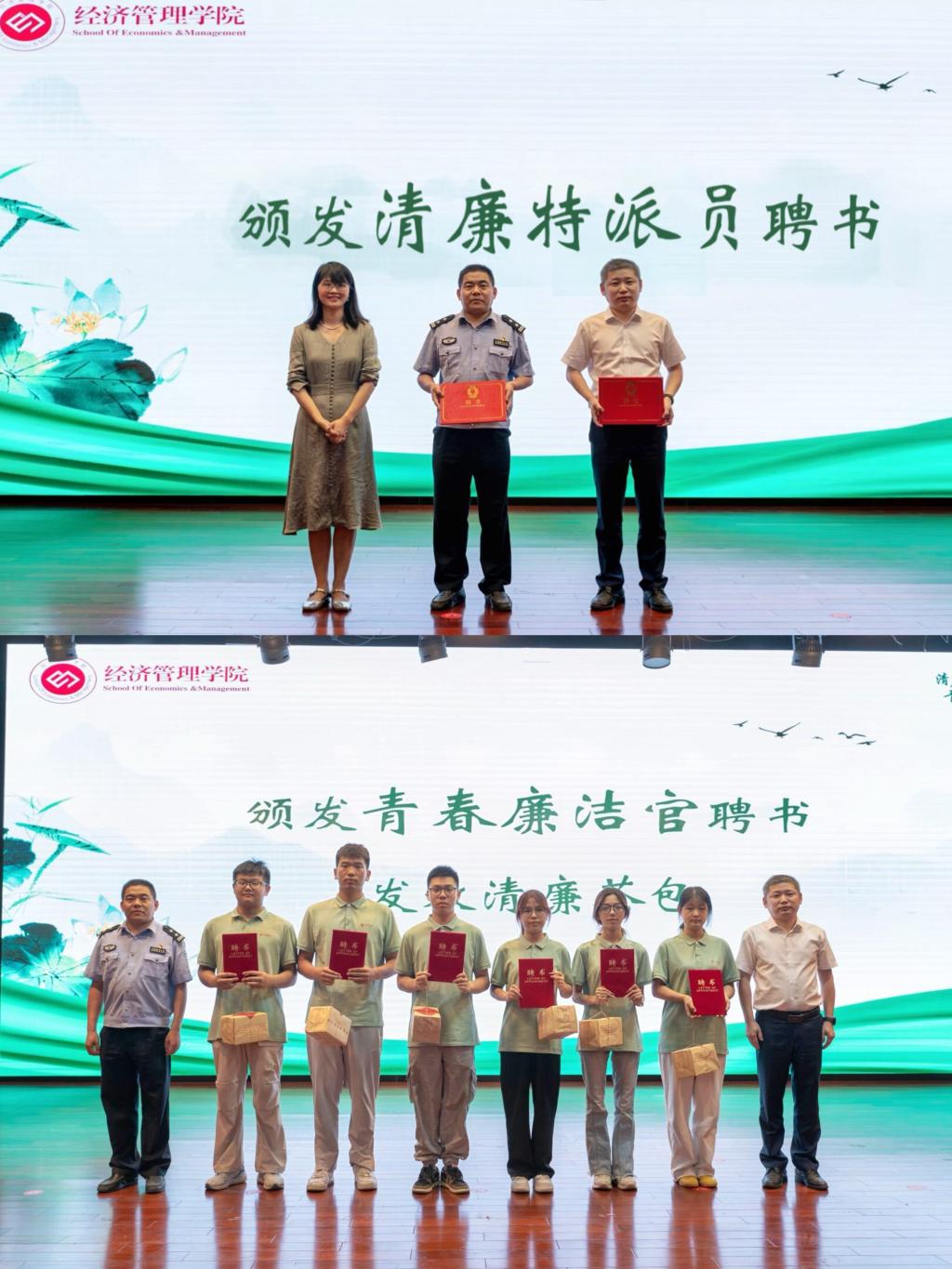 为加强“警银校”合作,整合专业力量参与安全工作,学院还聘请义乌市农商银行江东支行、义乌市江东派出所工作人员担任学院的清廉特派员,也遴选6名优秀学生代表担任“青春廉洁官”。活动现场还赠送了清廉茶包,希望新生都能成为清廉文化的传播者和实践者,让清廉之风吹遍校园的每一个角落。