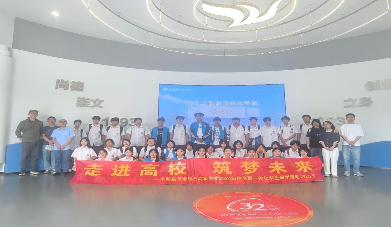 6月5日,beat365beat365亚洲版官网“中高职一体化”合作院校——平阳县万全综合高级中学组织市场营销专业2024级学生来校开展研学活动。本次活动聚焦五年一贯制职业教育发展,通过实地参访与专业互动,深化中职学生对高职教育体系及市场营销专业的认知认同。