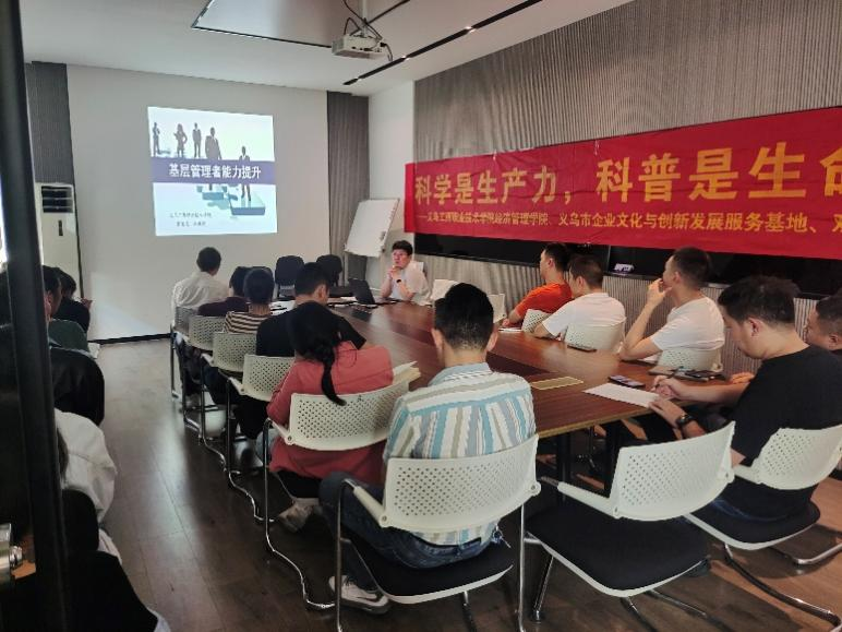 为提升中小制造型企业基层管理者的管理水平,提高企业生产效率,11月4日下午,beat365亚洲版官网在义乌市缤纷服饰有限公司开展了“科学是生产力,科普是生命力”的基层管理者管理知识科普活动。公司办公室基层管理人员和生产车间基层管理人员20余人参加。