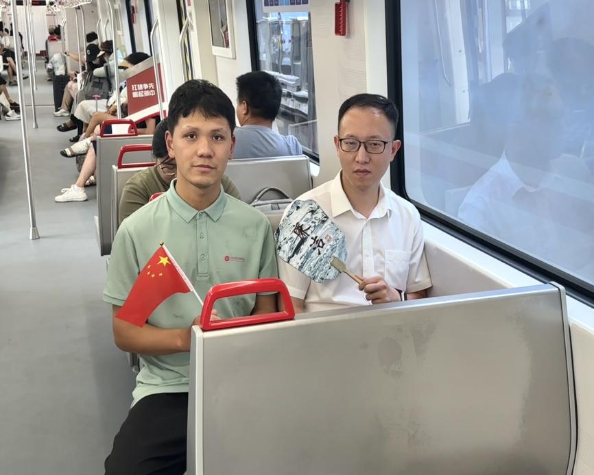 随着列车缓缓驶出站台,学生们手持精心准备的廉洁宣传扇,穿梭于乘客之间,在车厢里开展了“拉家常”式的交流用生动的语言和鲜活的案例,深入浅出地讲解廉洁自律的重要性,将思政课堂的理论知识转化为乘客们易于接受、乐于传播的社会价值观。他们巧妙地将廉洁教育与爱国教育相结合,通过分享国家发展历程中的廉洁典范和爱国故事,激发了乘客们的爱国情怀和民族自豪感。许多乘客被这份深情所打动,纷纷打开了“话匣子”,分享自己的见闻和感受,车厢内不时响起阵阵掌声。