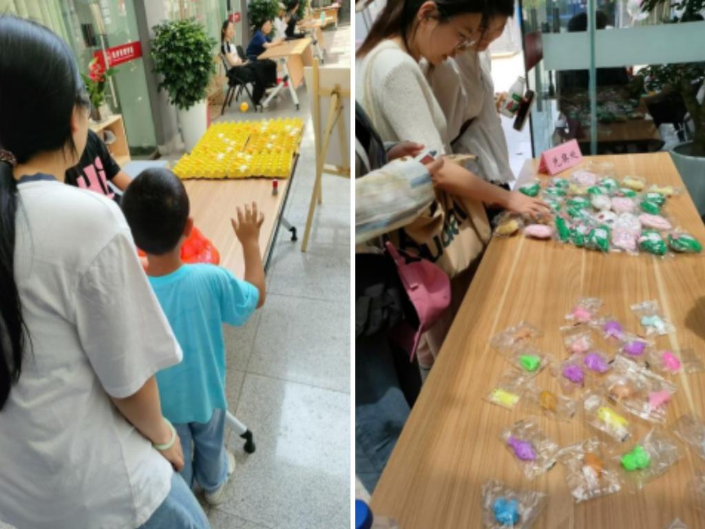 青春游园会精心准备了蛋壳投球、指压板跳绳、看字说颜色等5个活动。面对有趣的小游戏,校友们兴致勃勃,有的和孩子一起上阵比拼,有的带着另一半进行体验,欢声笑语飘满学院。随着手上力道尽松,乒乓球在桌上弹出弧线,稳稳落入蛋壳,比拼着运气与实力;顺着指尖读出汉字颜色,展现自我反应能力;一个个纸杯叠成塔又快速收回,尽显速度与激情;一块块指压板与脚底的碰撞,更让人血脉喷张。22届校友宣素华表示:“欢快的游戏氛围让我又嗅到了青春的味道。”